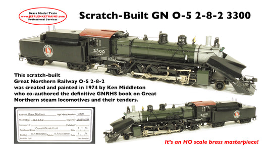 1/87th HO Scale Brass SCRATCH-BUILT Great Northern O-5 2-8-2 3300 with Snow Plow Pilot ONE-OF-A-KIND