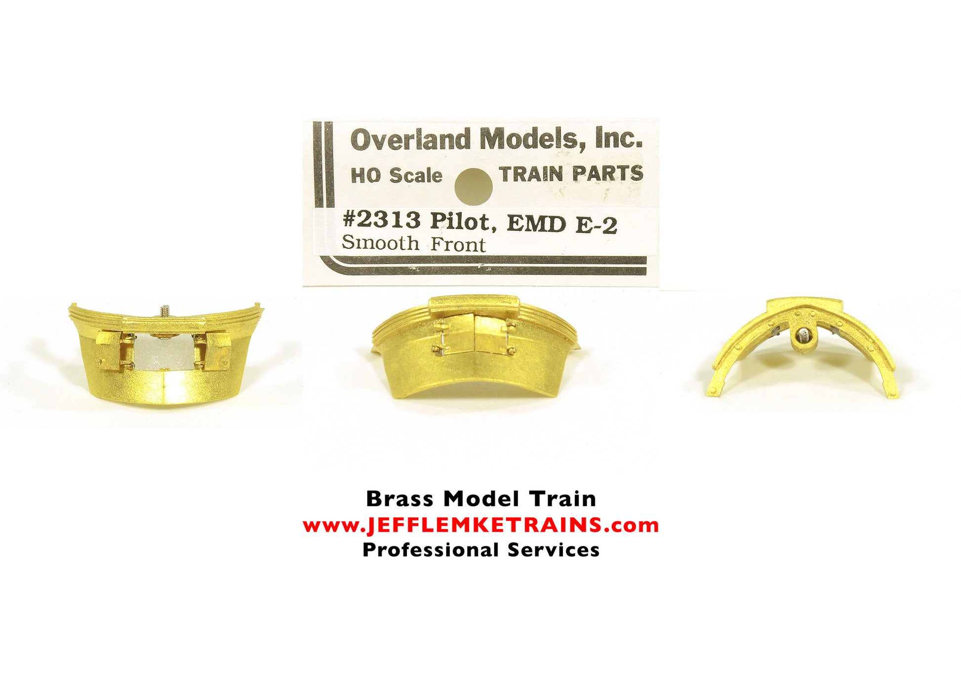 1/87th HO Scale Brass Overland Models OMI 2313 Pilot EMD E-2 Smooth Front. TCA Grade C-9 new in original packaging. The coupler doors are hinged and do swing open and closed. Three different views are shown of the exact same part. Package was opened to take these images and then repackaged. Only one (1) pilot is included and only one (1) pilot is in stock.
