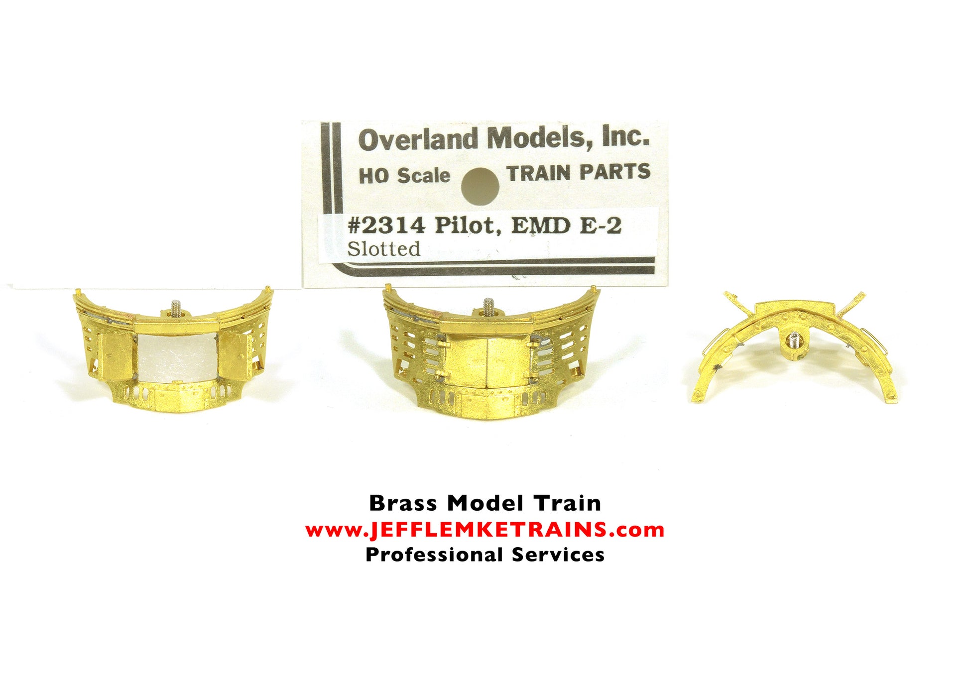 HO Scale Brass Overland Models OMI 2314 Pilot EMD E-2 Slotted. TCA Grade C-9 new in original packaging. The coupler doors are hinged and do swing open and closed. Three different views are shown of the exact same part. Package was opened to take these images and then repackaged. Only one (1) pilot is included and only one (1) pilot is in stock.