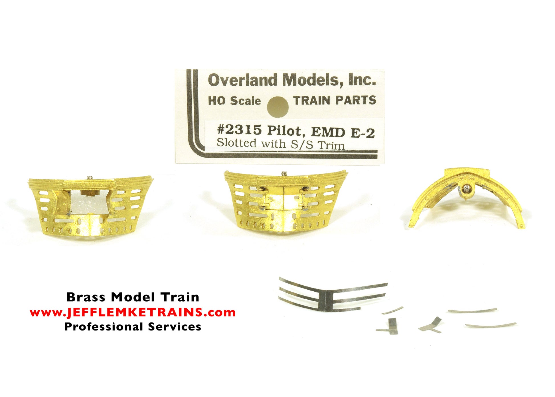 1/87th HO Scale Brass Overland Models OMI 2315 Pilot EMD E-2 Slotted with SS Trim. TCA Grade C-9 new in original packaging. The coupler doors are hinged and do swing open and closed. The stainless steel trim is included but note that one small piece broke off (but is included) on one of the whiskers on the largest stainless part. On account of that this item is SOLD AS-IS ALL SALES FINAL. Three different views are shown of the exact same part. Package was opened to take these images and then repackaged. Only one (1) pilot is included and only one (1) pilot is in stock.